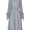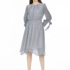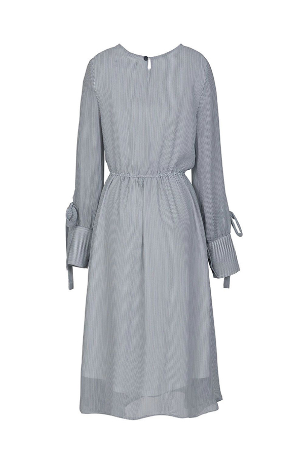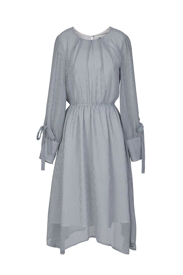 Những mẫu đầm kẻ sọc, tay dài, phối nơ điệu đà như KK92-39 vẫn luôn được quý cô công sở ưa thích trong mùa đông vì vừa thanh lịch, vừa nữ tính, lại hợp thời tiết. Điểm mạnh của mẫu đầm là thiết kế xòe bồng bềnh trên nền chất liệu voan lụa vô cùng nhẹ nhàng, tùng váy bất đối xứng khiến mỗi bước di chuyển của nàng thêm phần mềm mại, duyên dáng. Đây là một thiết kế mà nàng có thể diện ở bất cứ đâu, kể cả khi đi làm, đi chơi, dạo phố.